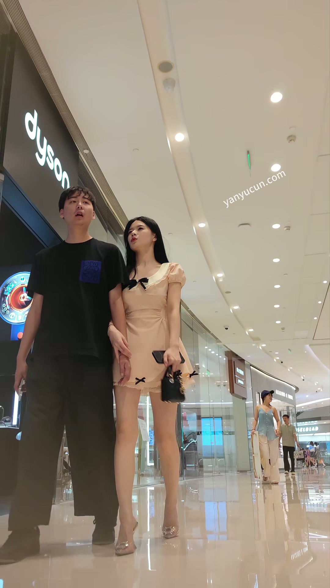 XM357粉色连衣裙极品高跟鞋美女和男朋友逛街,白色内内 ...
