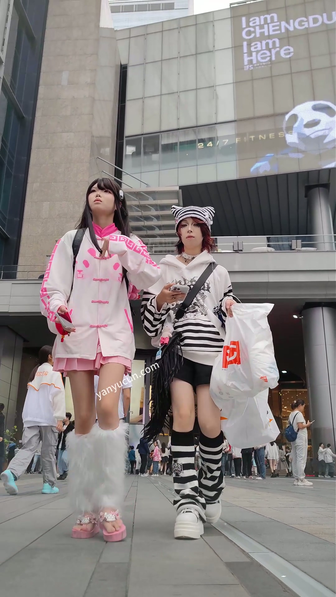 XM416粉色JK小美女和朋友逛街,白色内内