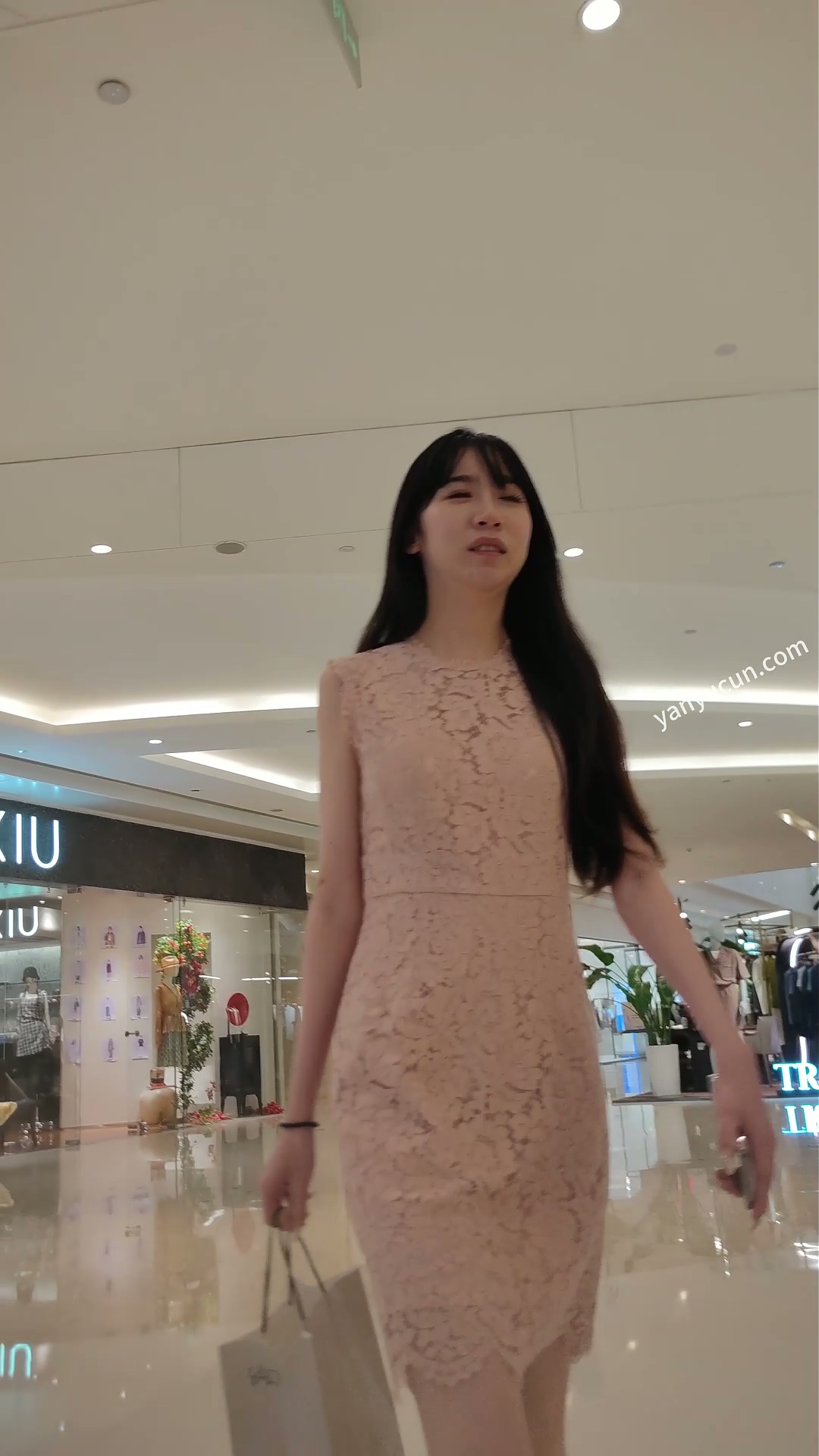 XM423粉色连衣裙极品美女和闺蜜逛街,白色屁股半透明内 ...