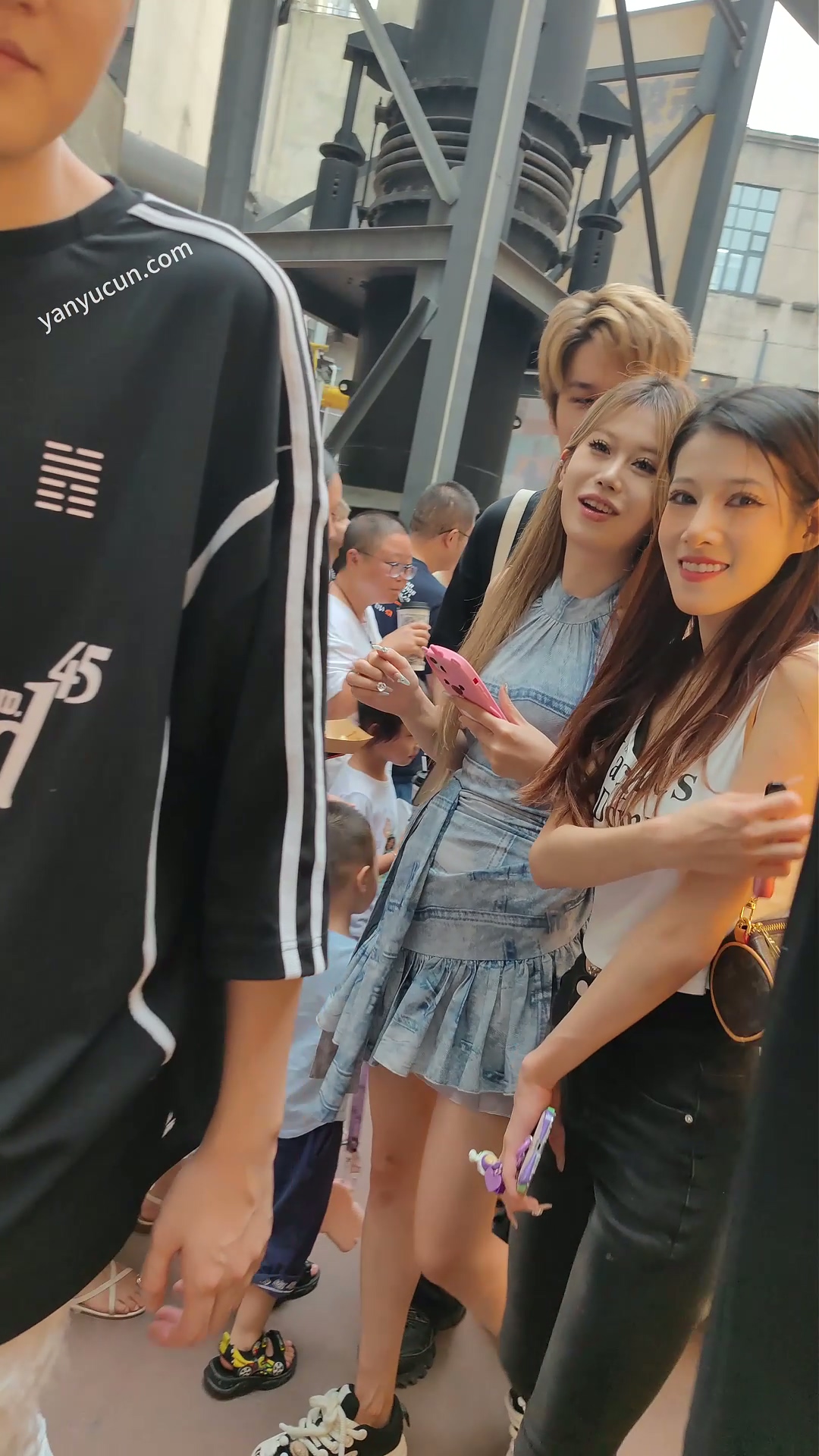 XM437蓝色蕾丝连衣裙极品美女和男朋友逛街,粉色一次性 ...
