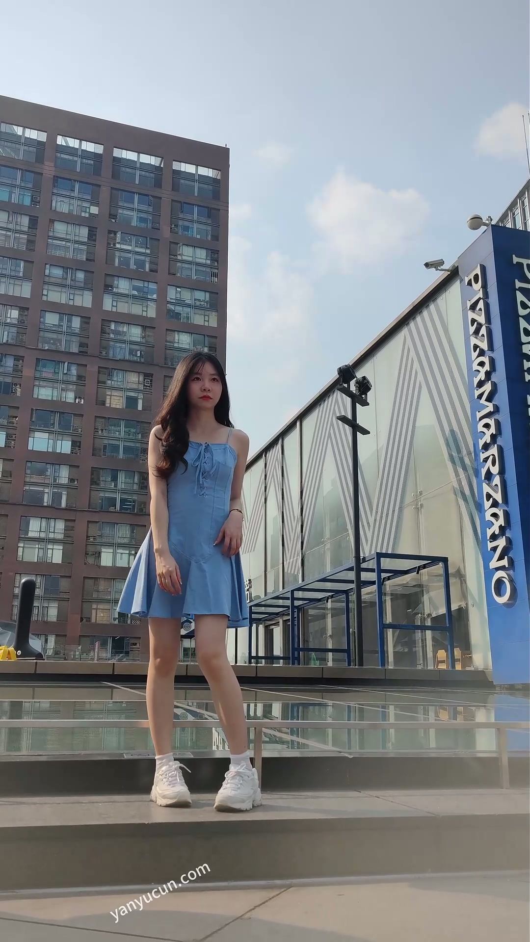XM446蓝色连衣裙极品清纯美女网红打卡地拍照,前后抄底 ...