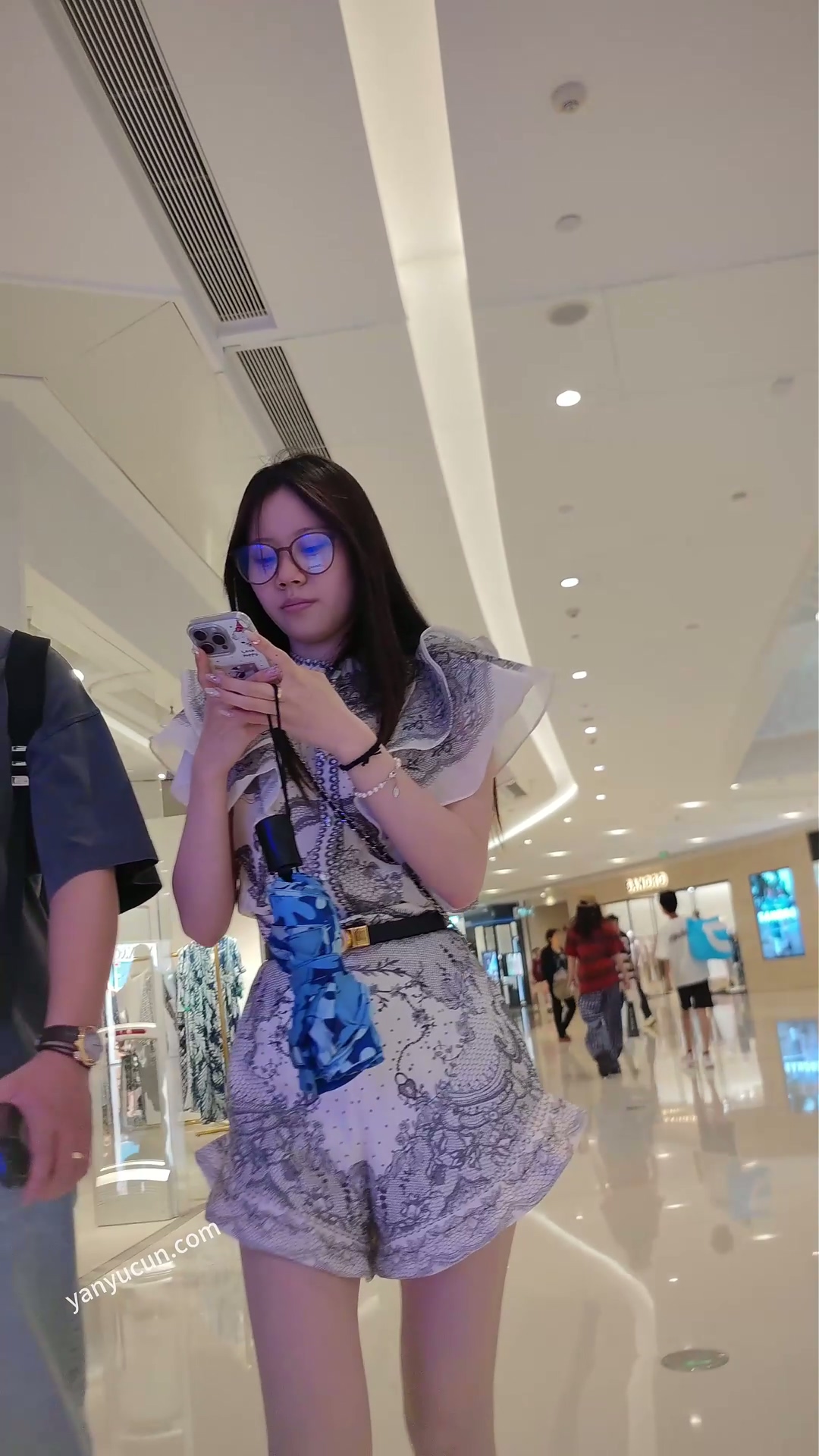 XM466白色超级宽松短裤小姐姐和男朋友逛街,白色窄内 ...