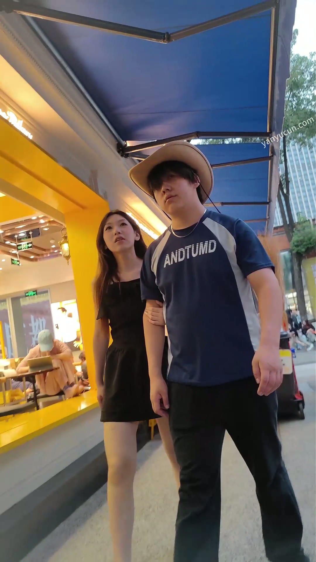 XM480黑色连衣裙美女和男朋友出来游玩,黑色窄内