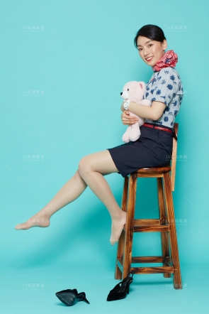 【XLBCD】155蓝色长裙头上扎个花的可爱妹子,蓝色黑点N
