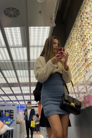 【YZWCD】YC439灰色jk小姐姐逛街!干净粉N勒出13缝!