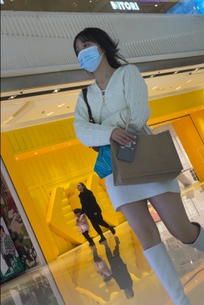 【YZWCD】YC488排队的牛仔裙美女!粉红N勒出明显痕迹!
