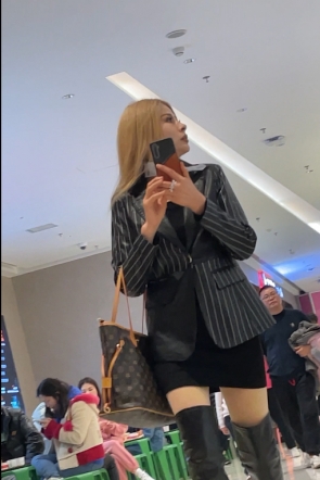 kc614(空城原创)逛商场的粉裙漂亮小姐姐,微透米白N