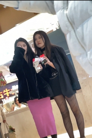 【XLBCD】482蓝色短裙小姐姐和闺蜜等奶茶,白色窄n
