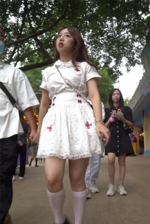 trump558【 KFC-412 】洛丽塔小学妹逛街。LO裙白色丝袜黑N前后
