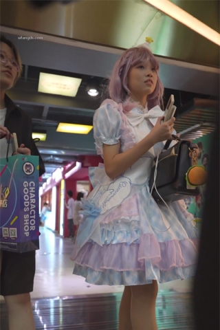 (BC-B-093)卡通lo裙小姐姐逛街..肉色丝袜内裤一半夹进屁股缝
