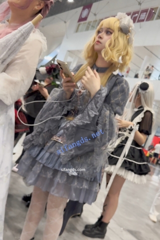 trump1091【KFC】打扮的像公主的COSER。洛丽塔裙白色丝袜盯着镜头看