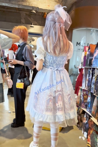 (BC-AA-432)粉色睡衣裙美女逛街..看表演被抄底粉窄内露毛