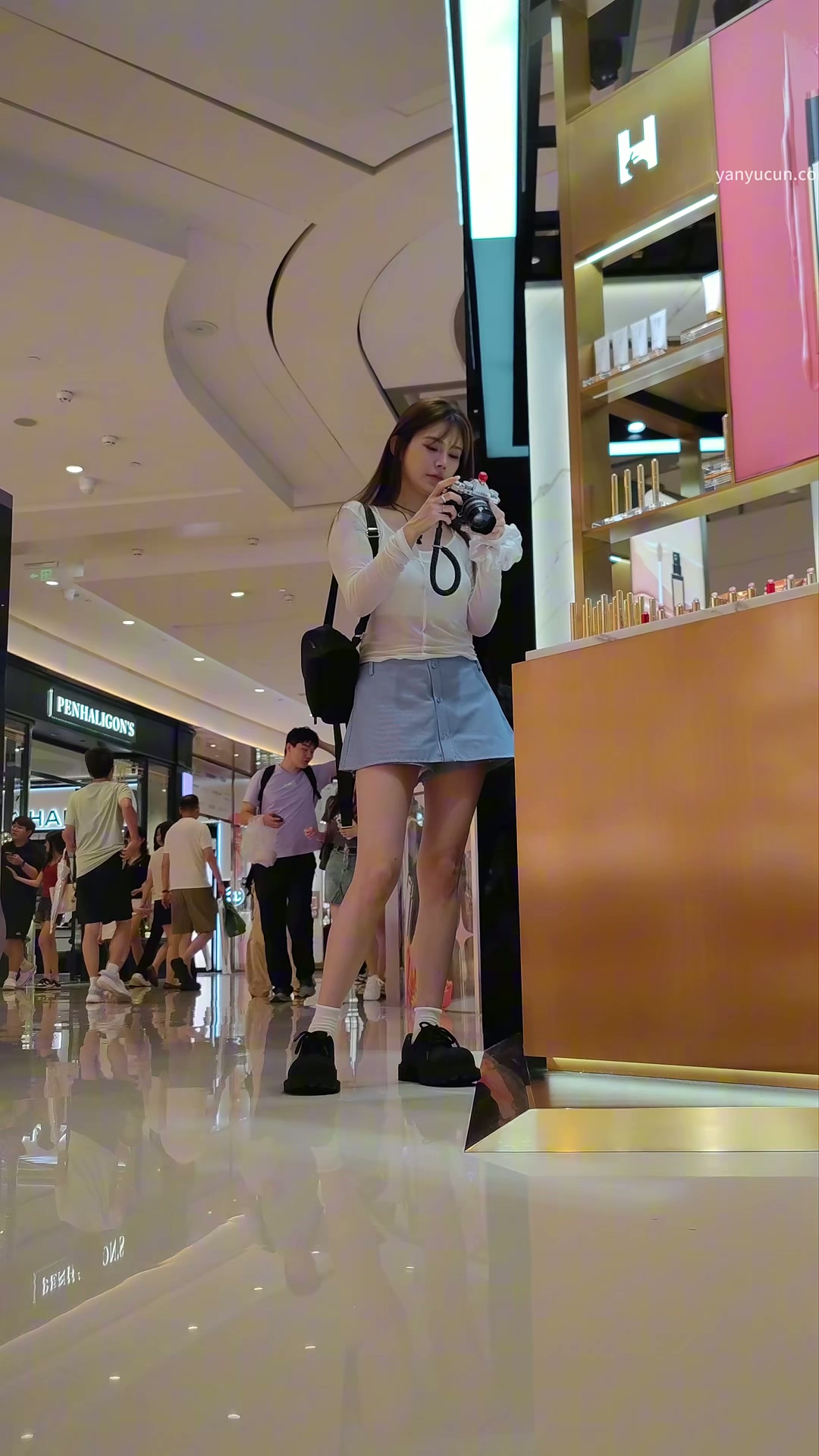 XM306蓝色裤裙美女商场一边走路一边拍照,白色内内 306