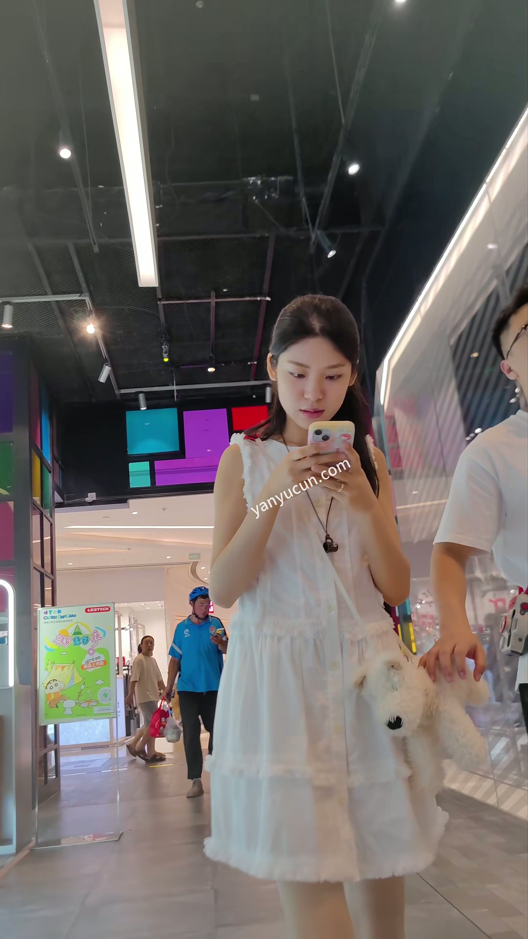 [CD单选] XM368白色了连衣裙小姐姐和男朋友逛街,粉色斑点内