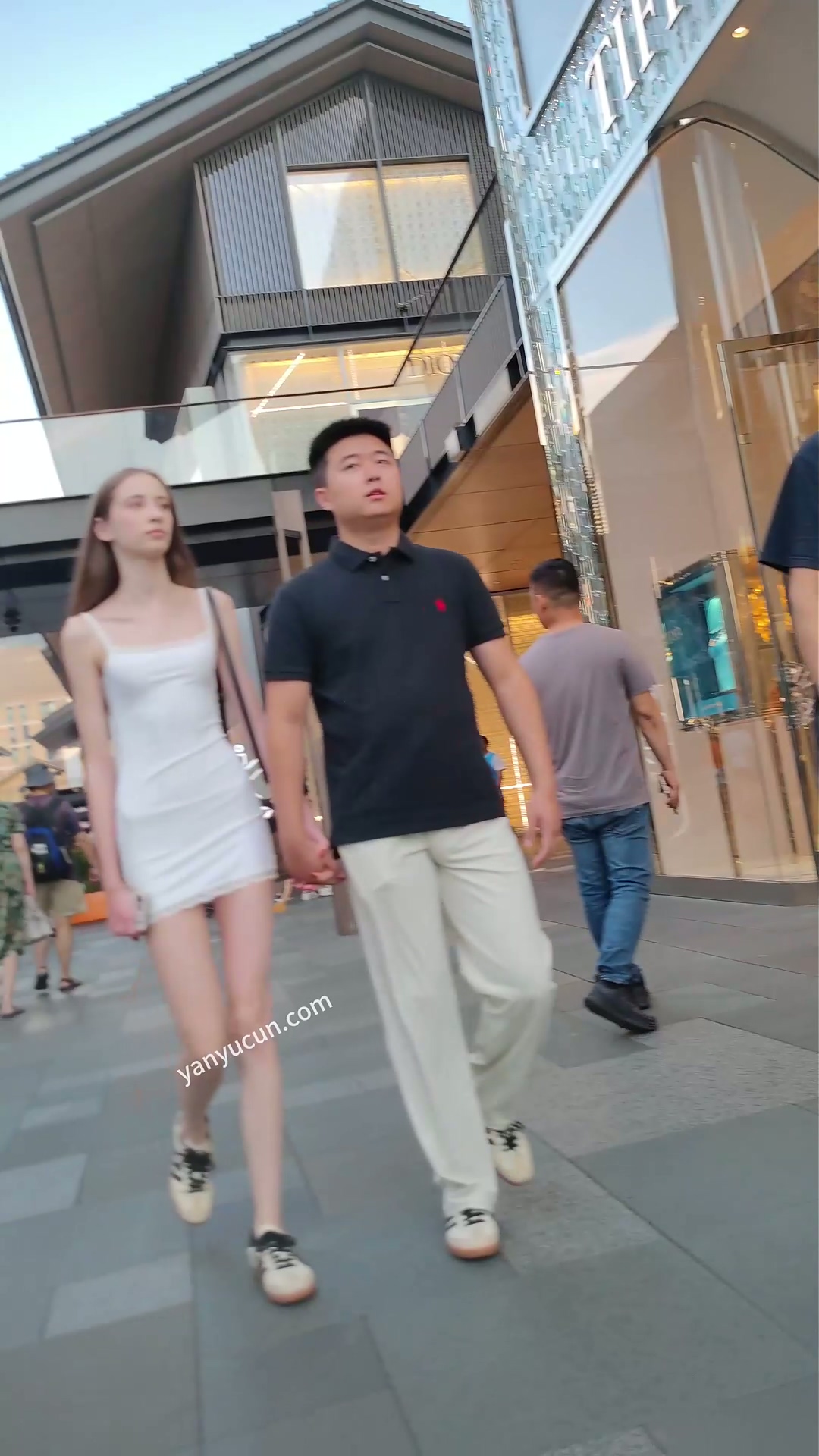XM417白色包臀裙极品外国美女和男朋友逛街,白色丁字裤 ...