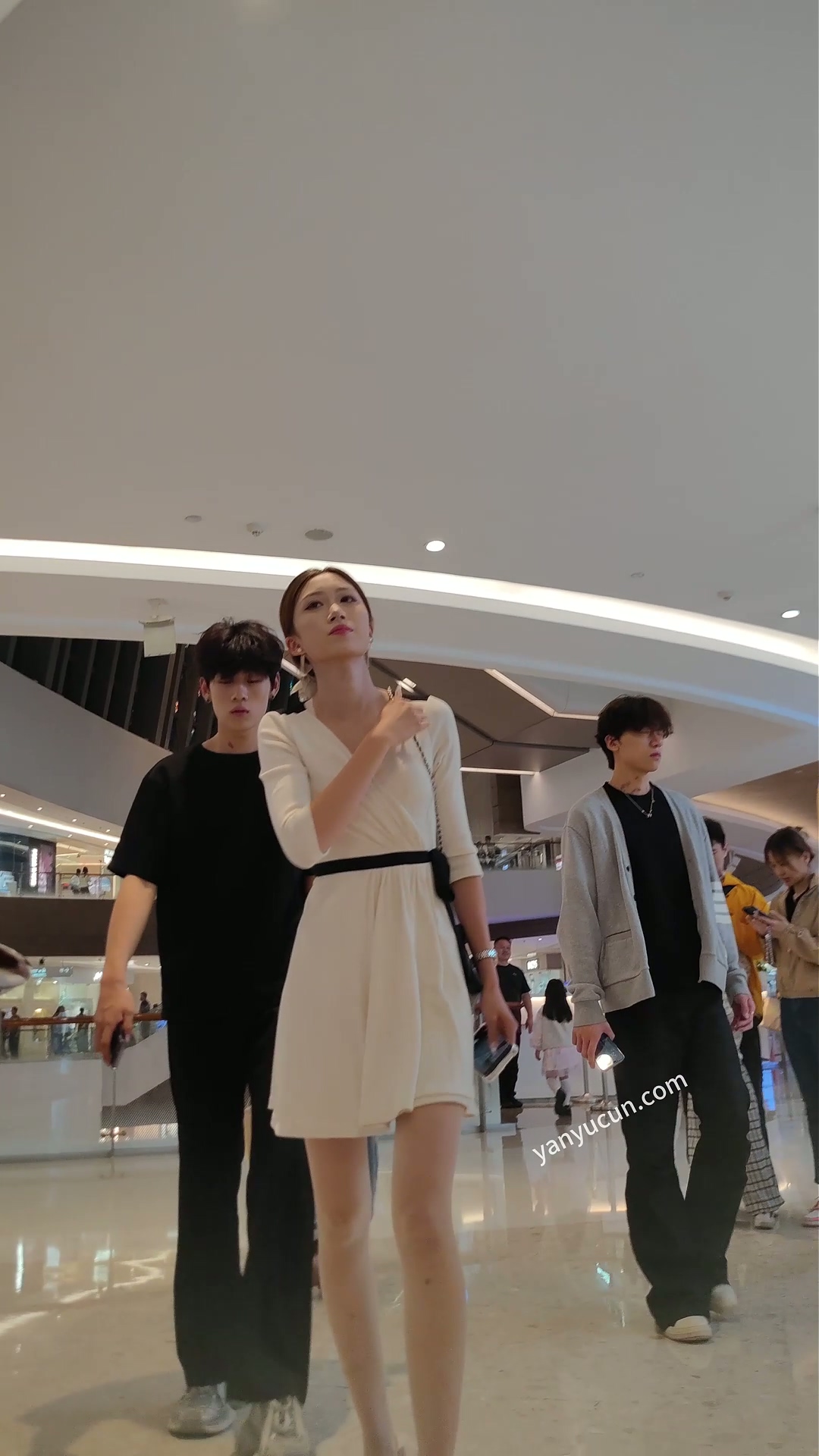 XM451米色连衣裙肉色丝袜美女和朋友们逛街吃饭,白色内 ...