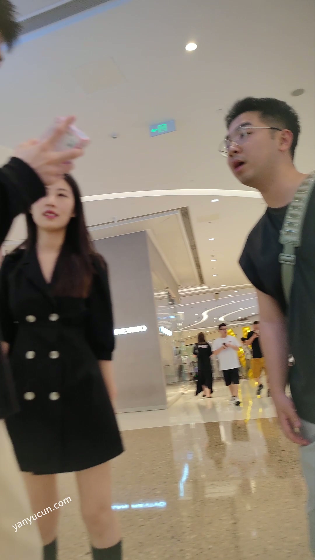XM462黑色连衣裙美女和朋友逛街,白色窄内前后抄底