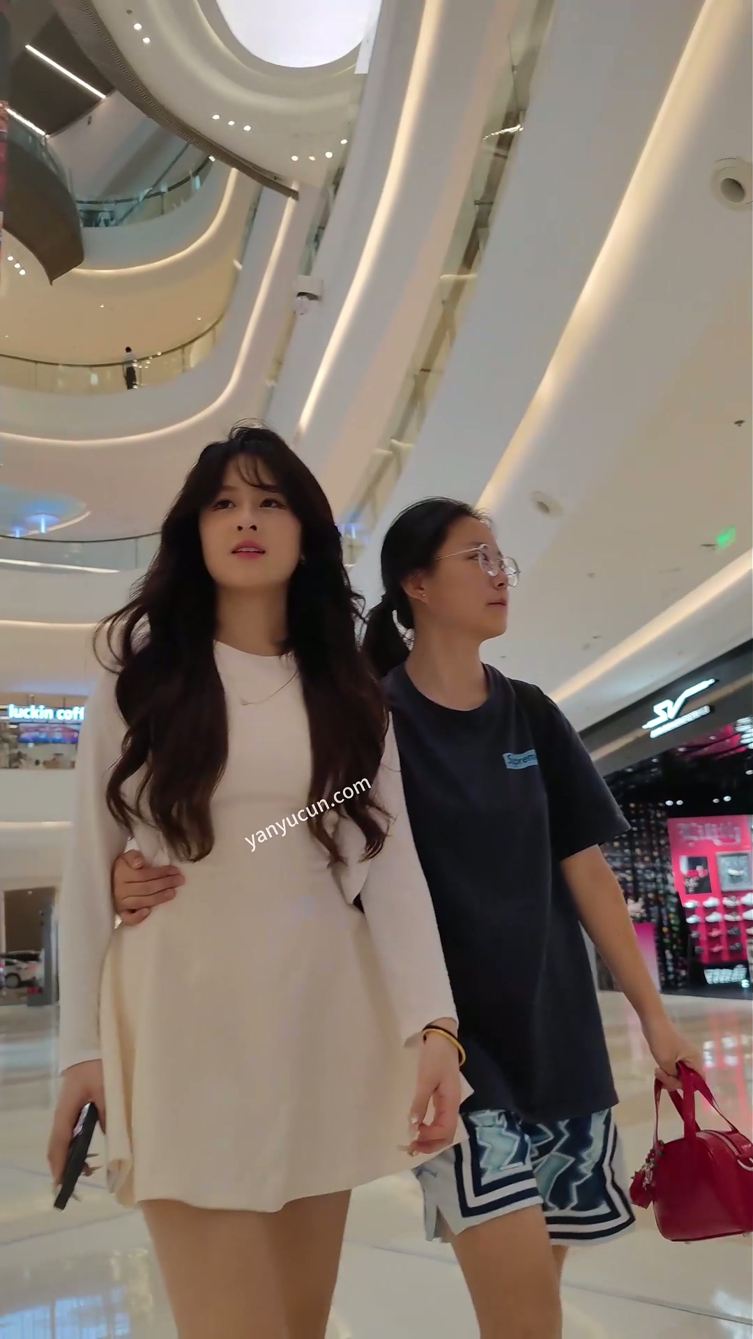 XM479白色连衣裙小姐姐和闺蜜逛街,白色内内