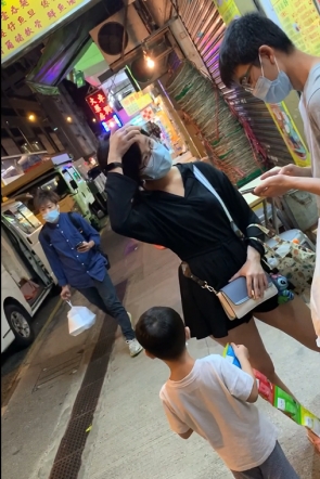 【XLBCD】459白色连衣裙漏露背高颜值小姐姐,蹲下来挑选东西